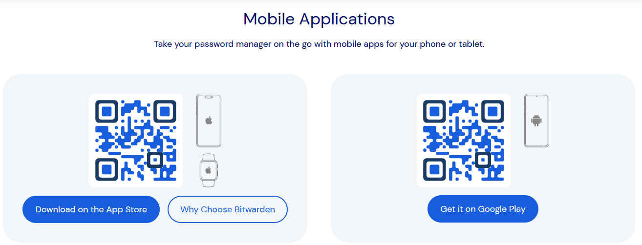 A questo punto sarà possibile accedere alla Cassaforte creata con le varie app messe a disposizione di Bitwarden nel suo sito: