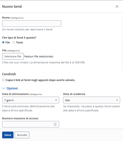 Possiamo decidere la validità di questo link e dopo quanti giorni questo sarà eliminato.