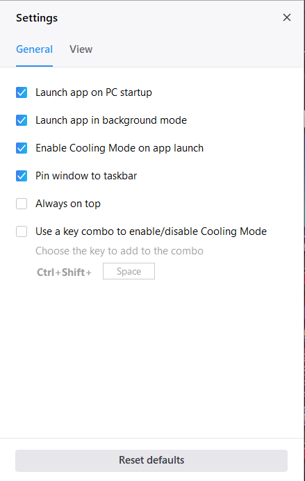 Infine attivare la modlità Cooling Mode gendo sul selettore della schermata principle del software