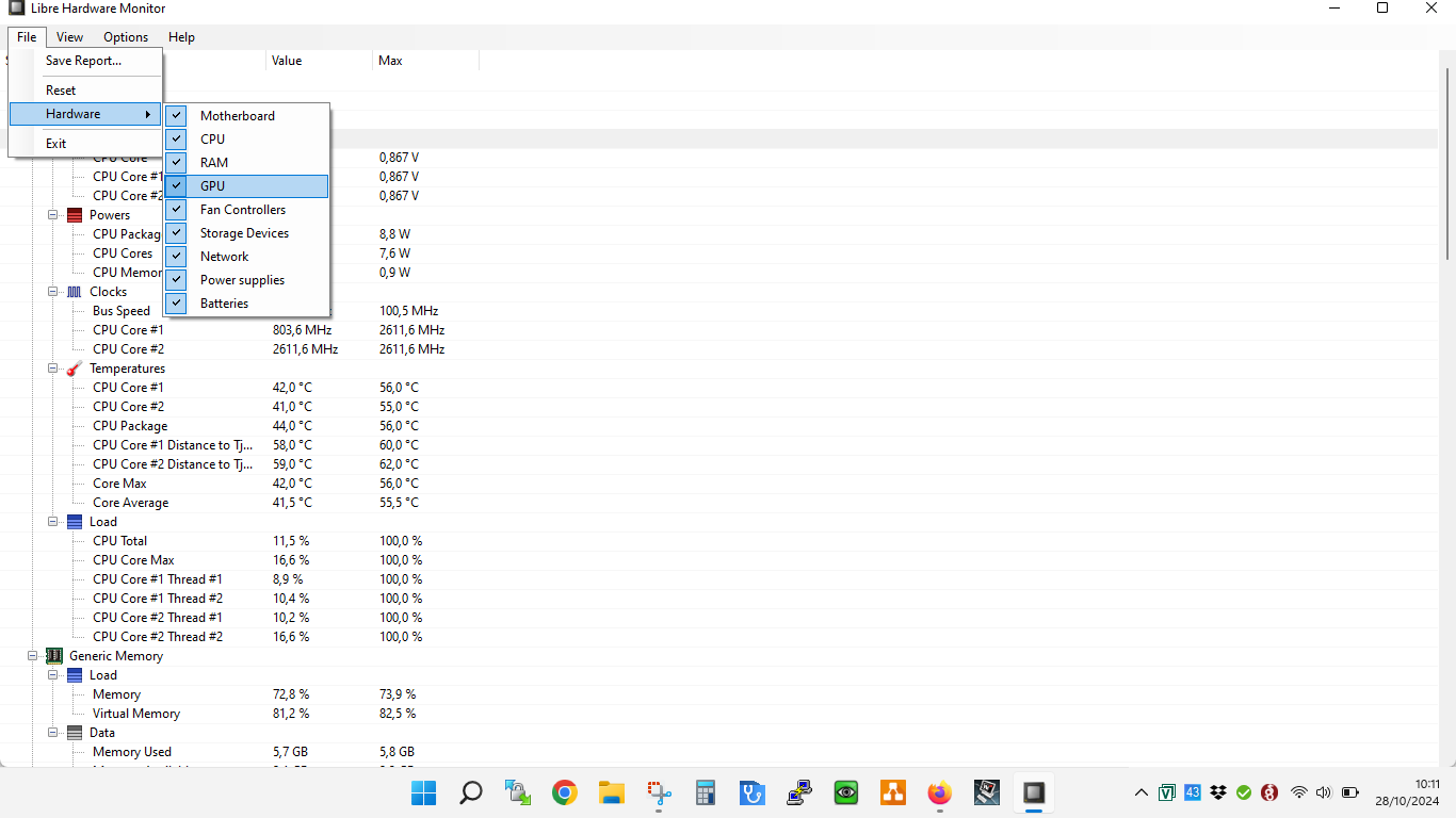 Qui da File - Hardware è possibile selezionare le componenti di cui interessata tenere monitorato lo stato